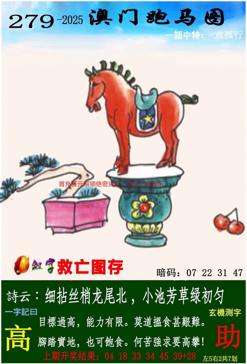 280期:今期狗马兔出特,遥怕春残百鸟凌【开發00准】